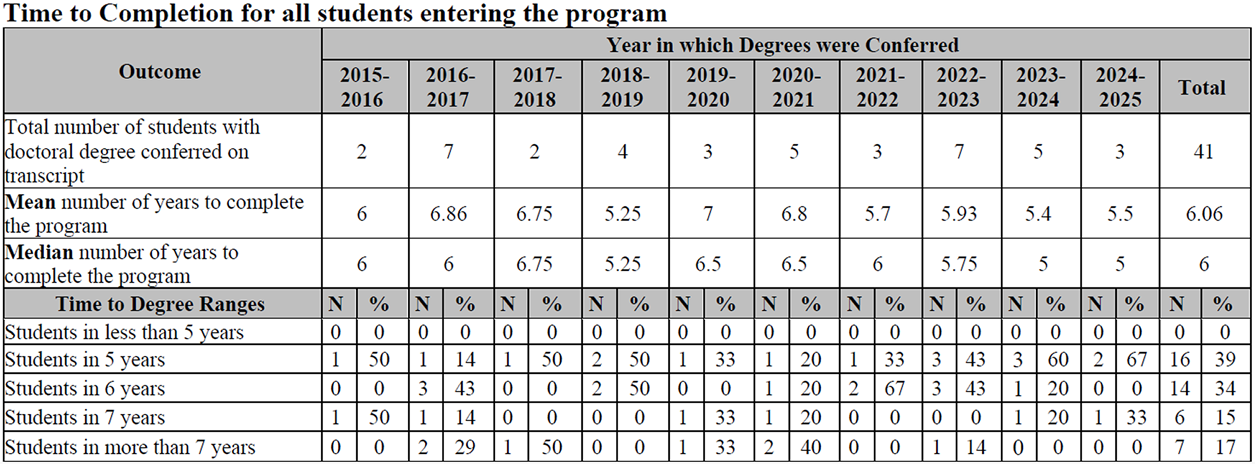 The program can be completed in 5 years of full-time graduate study (9-14 credits) and requires a Masters degree in counseling, clinical psychology, or closely related field as a pre-requisite to admission. Most current students are taking between 5 years and 6 years to completion, including the doctoral internship. If a student elects to complete a 2-year half-time pre-doctoral internship, it will take a minimum of 6 years to complete. Transfer students are not admitted into the program. Any applicant with questions about pre-requisites may contact Dr. Julia Phillips at j.c.phillips6@csuohio.edu or by phone at 216 875-9869. If a prospective student is missing a few of the pre-requisites from the masters degree, but otherwise qualifies for the program, that student may complete the missing pre-requisite courses early in their doctoral program, thus not extending the time required to complete the degree. Some newly admitted students elect to complete the pre-requisites in the summer before starting doctoral studies. Students who are deficient in several pre-requisites are likely to extend their programs if they do not begin to enroll in the pre-requisites at the beginning of doctoral studies.